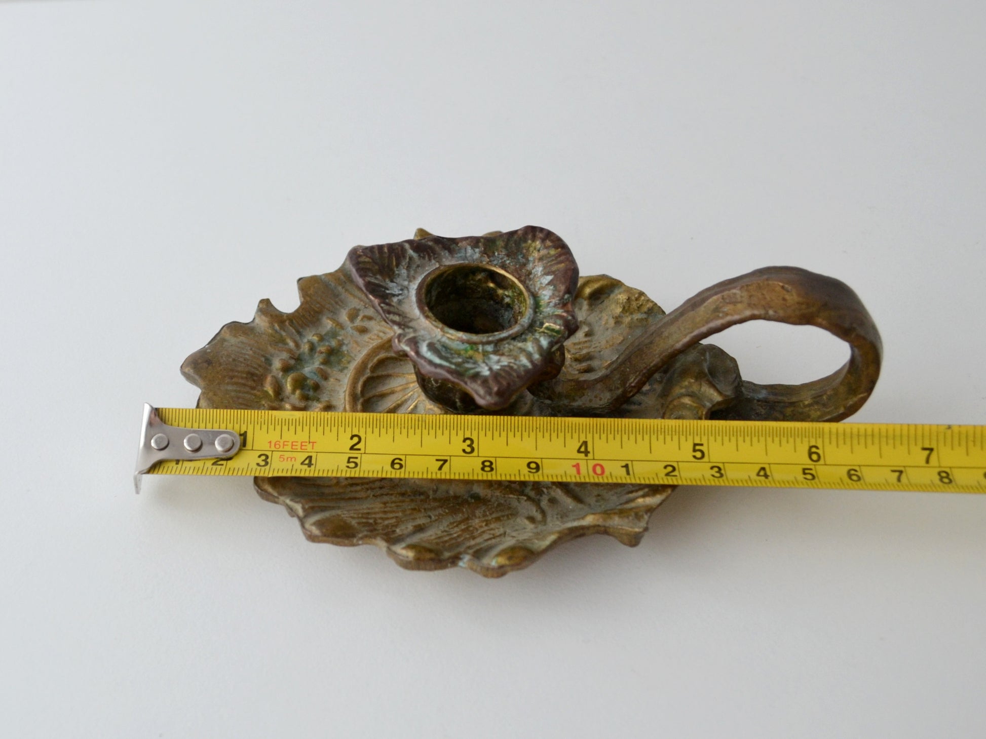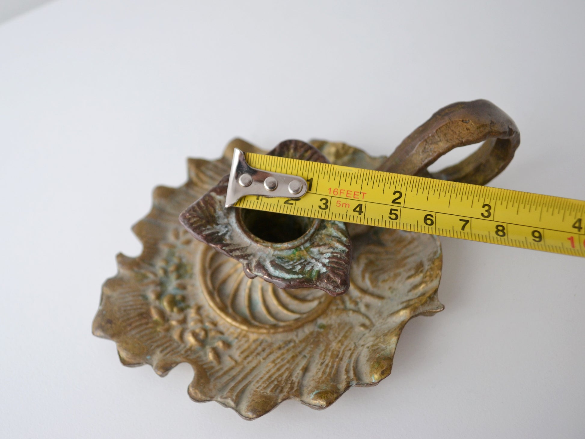 A century of candlelight has left its mark on this richly cast chamberstick — its deep verdigris patina and sculpted foliate relief speak to a quality of craftsmanship that the modern world has largely forgotten.