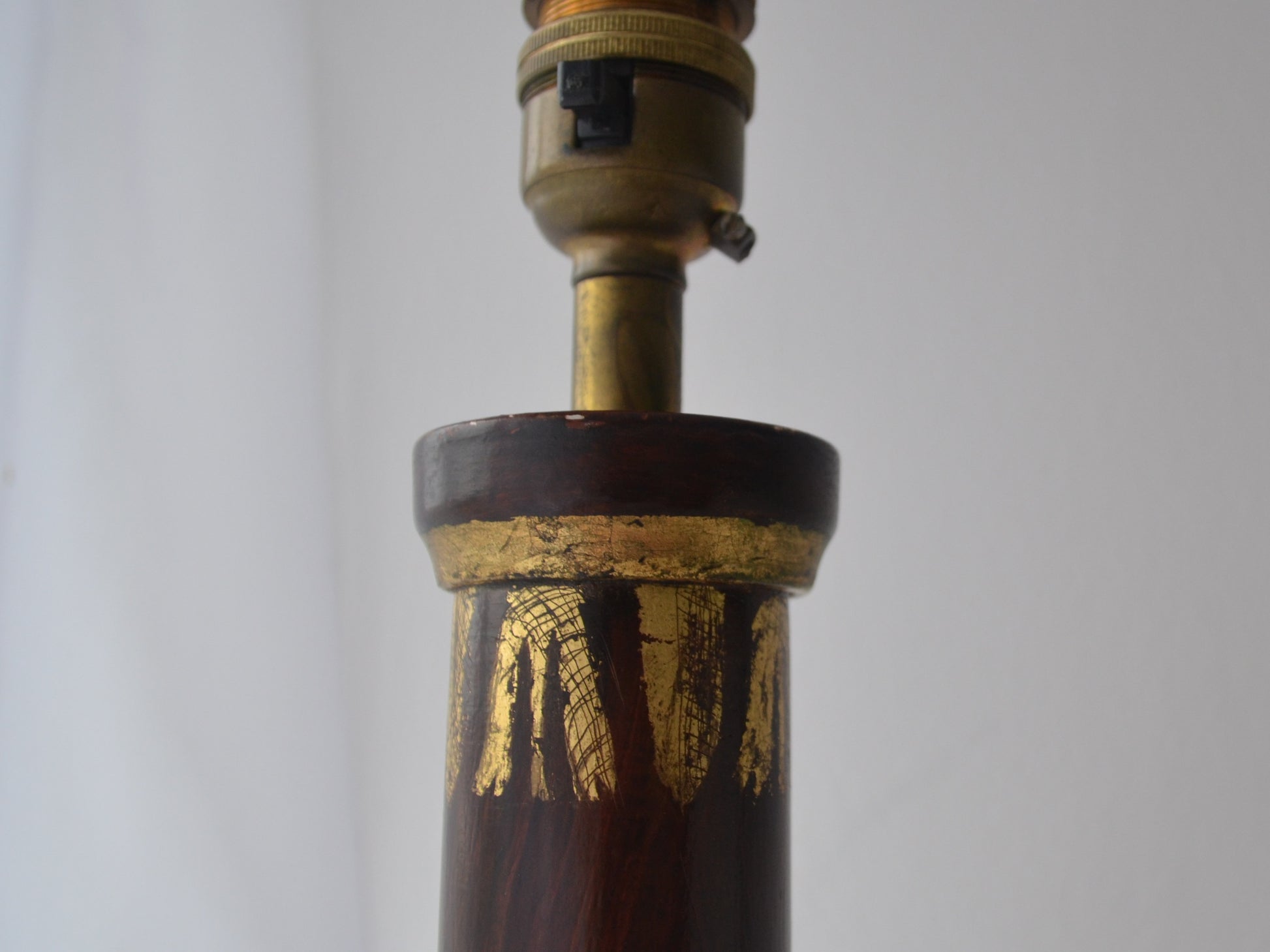 CONDITION: In good vintage condition consistent with age. Natural wear to the gilt decoration throughout — particularly to the plinth base and upper column — consistent with age and handling. The lacquered wood body is sound and intact. Lamp tested and in full working order. PAT tested 27/03/2026.