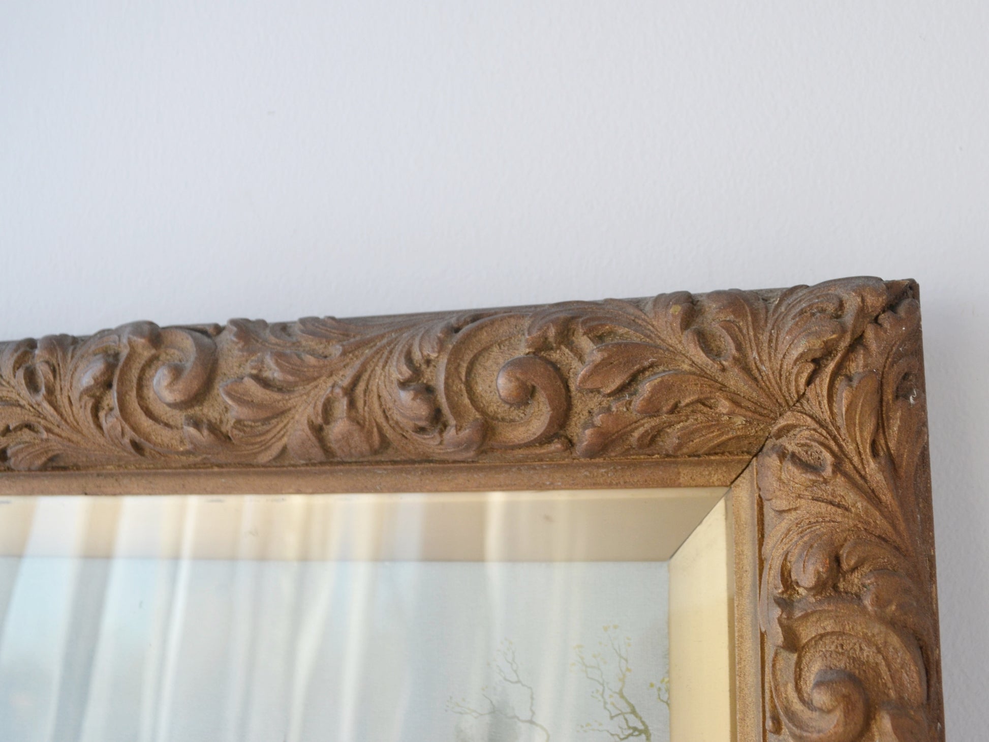 CONDITION: In good vintage condition, consistent with age. Minor wear to the frame moulding at one corner. Small loss to the gilt inner slip — visible on close inspection, not visible from normal viewing distance. Bevelled glass intact, no cracks. Print in good condition behind glass. Hanging cord present.